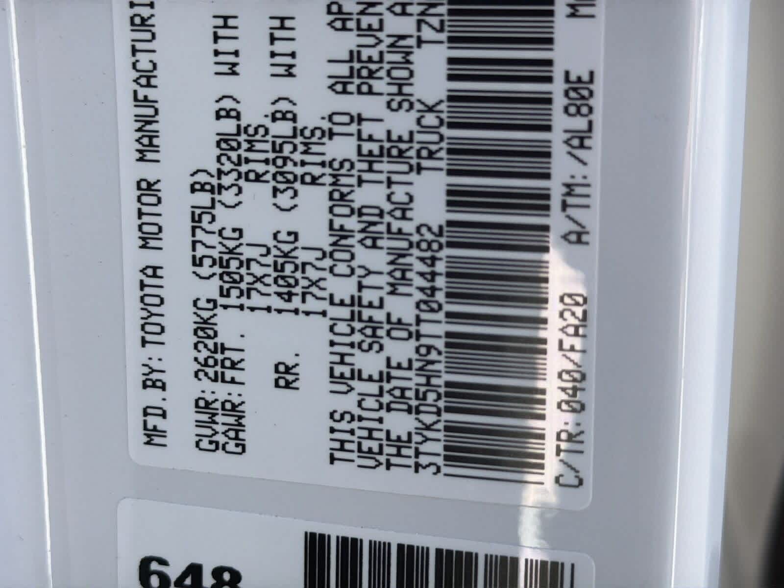 VIN: 3TYKD5HN9TT044482