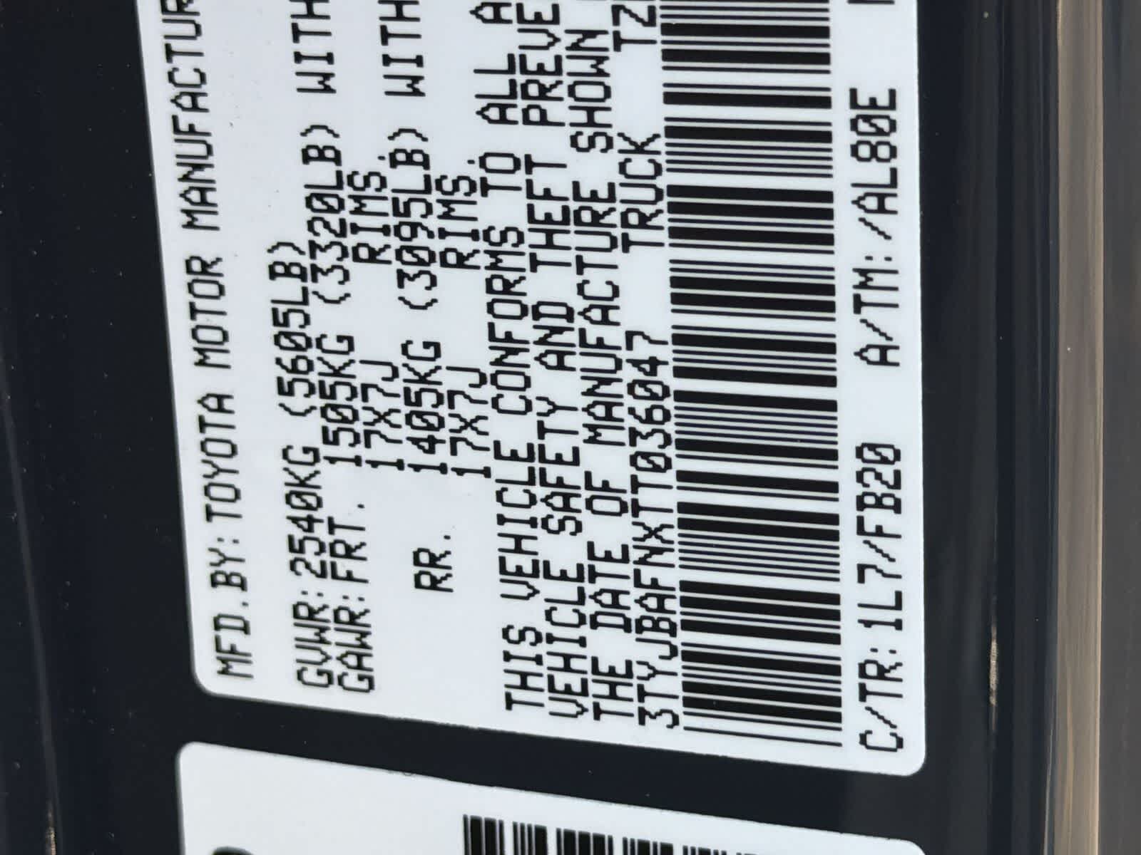 VIN: 3TYJBAFNXTT036047