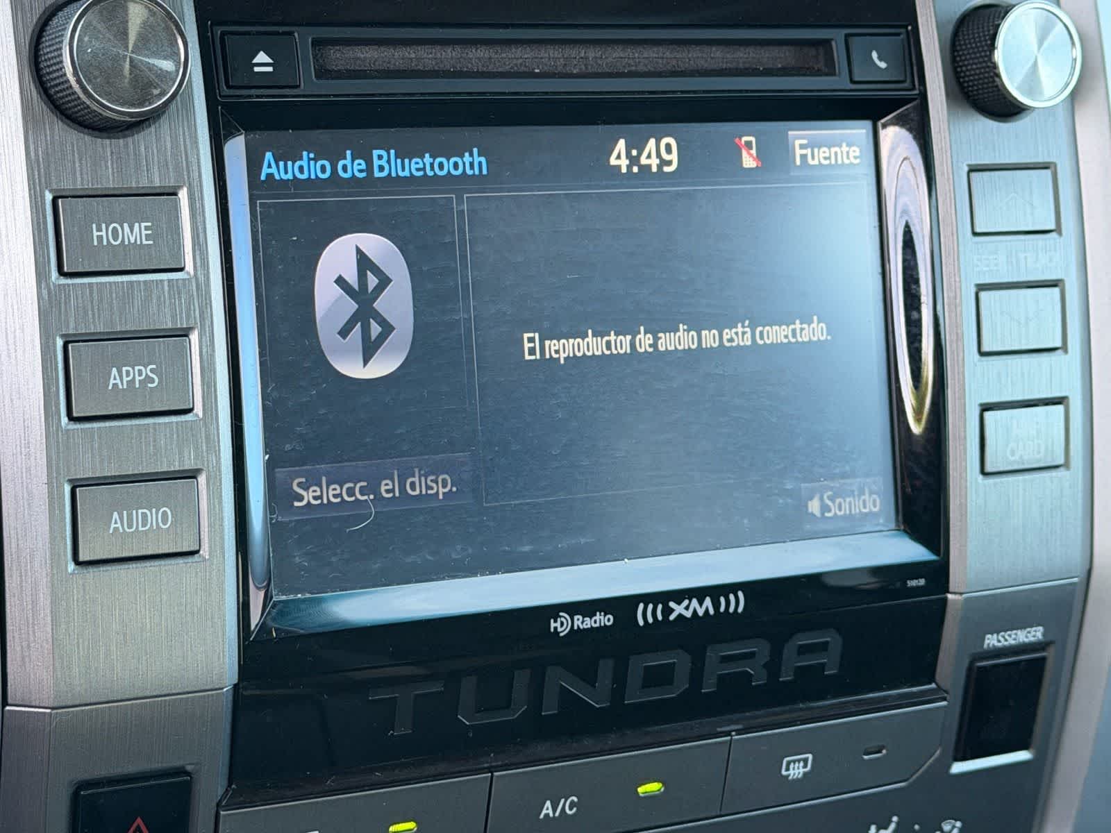 - Radio: Entune Audio Display AM/FM/HD w/CD Player -inc: connected navigation Scout GPS Link app, MP3/WMA playback capability, 6 speakers, high-resolution 7" touch-screen display, auxiliary audio jack, USB 2.0 port, iPod connectivity and control, HD traffic and weather in major metro areas, Bluetooth® hands-free phone capability, phone book access, adanced voice recognition and music streaming, Siri Eyes Free and integrated backup camera display, SIRIUSXM Satellite Radio, all access radio w/90-day free trial