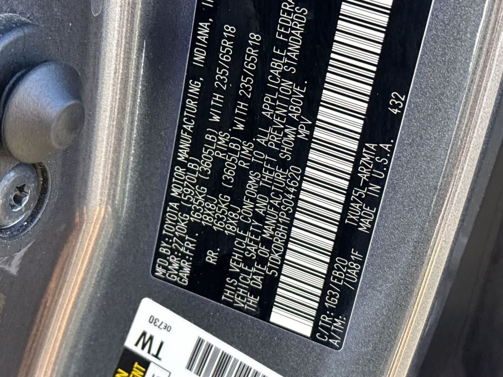 - Vehicle Name: Toyota Highlander
