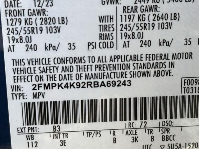 - Front Tire Size: P245/55VR19