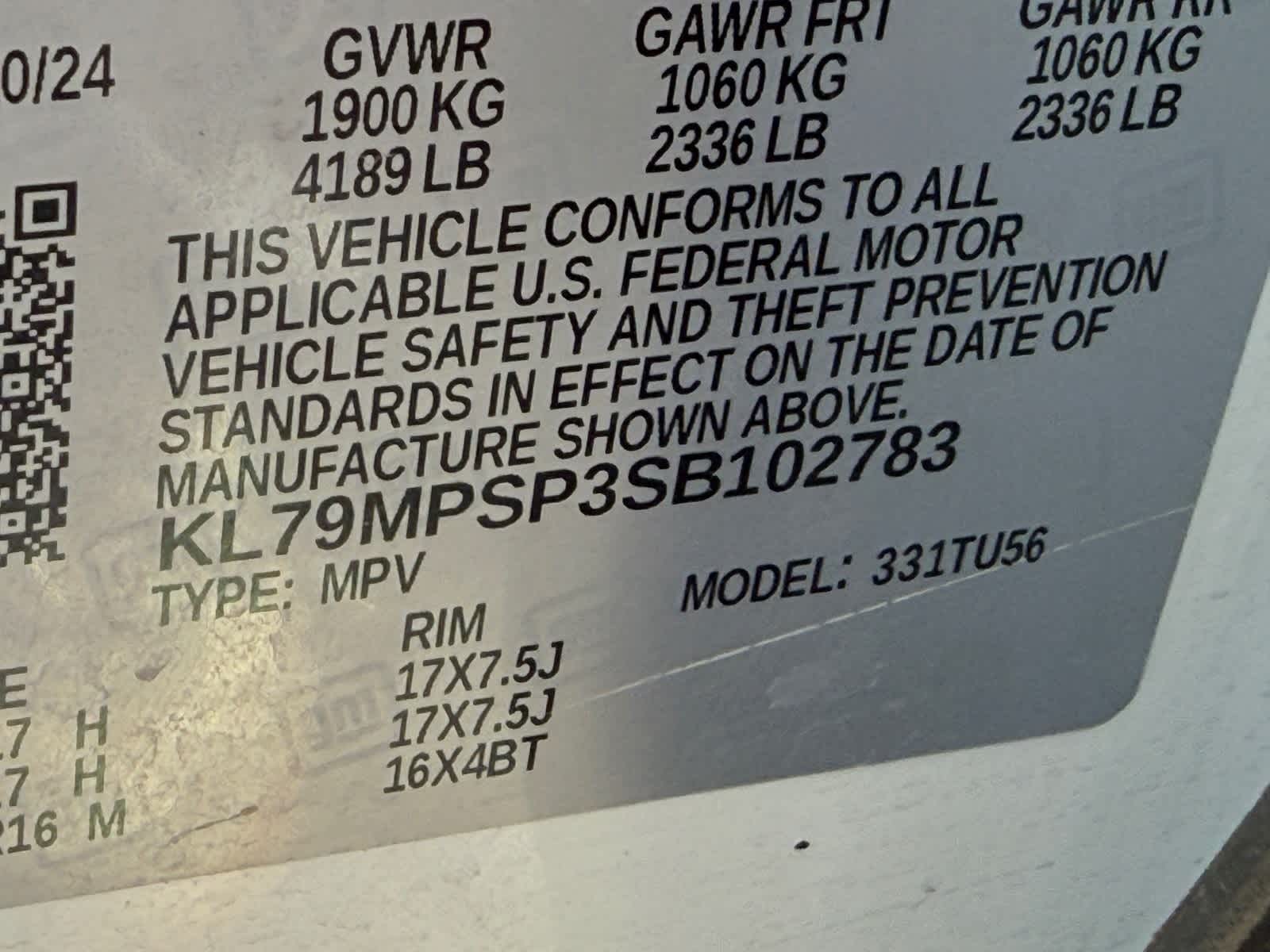 - Front Wheel Size (in): 17 x 7.5