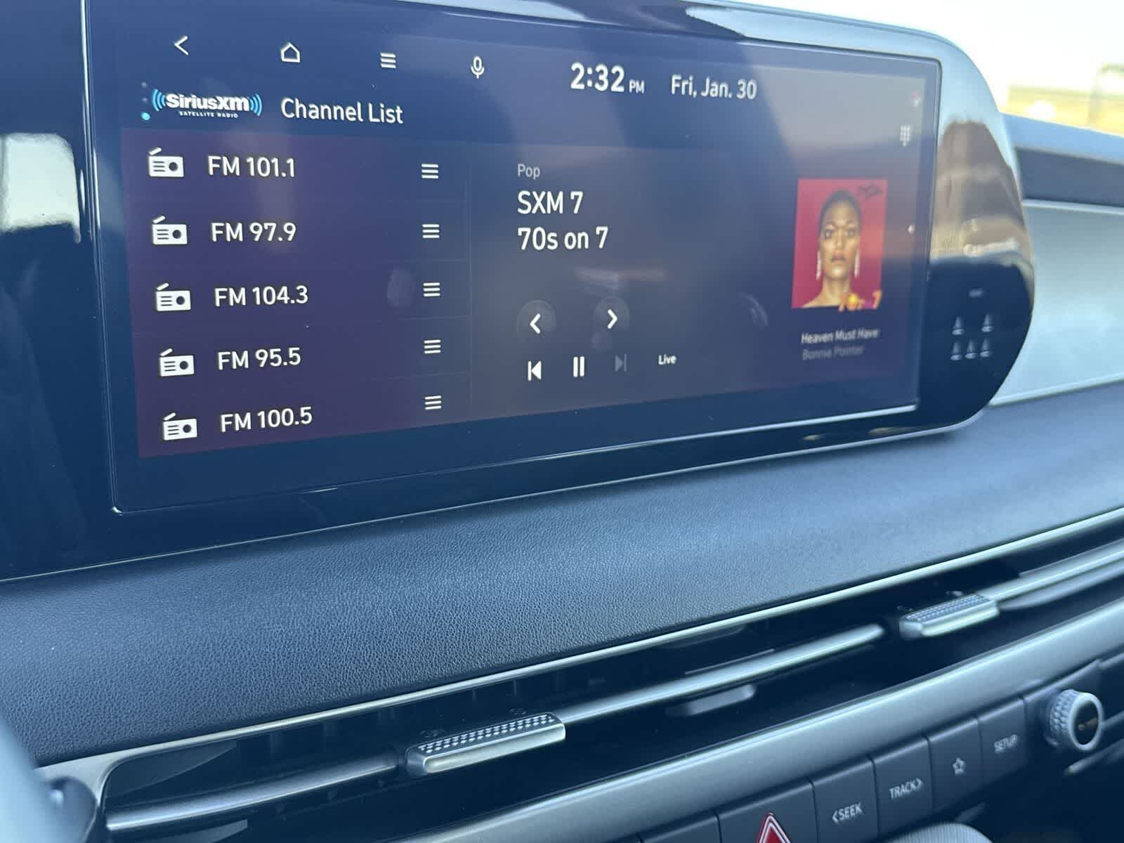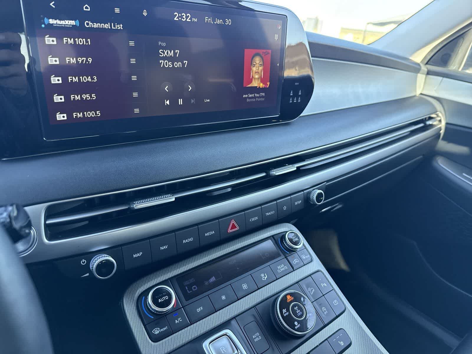- Radio: AM/FM/MP3 Audio System -inc: 12.3" color touchscreen display, onboard navigation w/traffic flow including incident data via HD Radio (HERE), Over-the-Air (OTA) map updates, SiriusXM, USB, Android Auto and Apple CarPlay, rear seat quiet mode, Bluetooth® hands-free connectivity w/multiple device connection and wireless audio streaming, Wifi hotspot, dynamic voice recognition and Bluelink Connected Car System