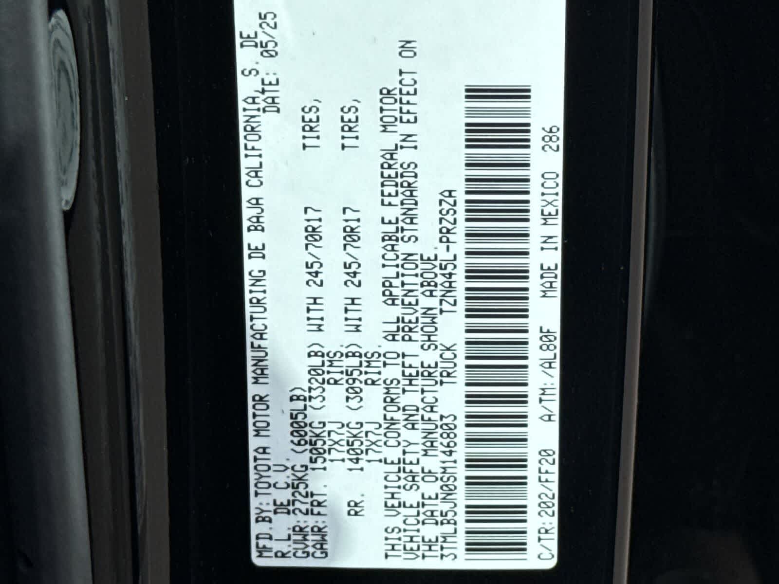- Vehicle Name: Toyota Tacoma 4WD