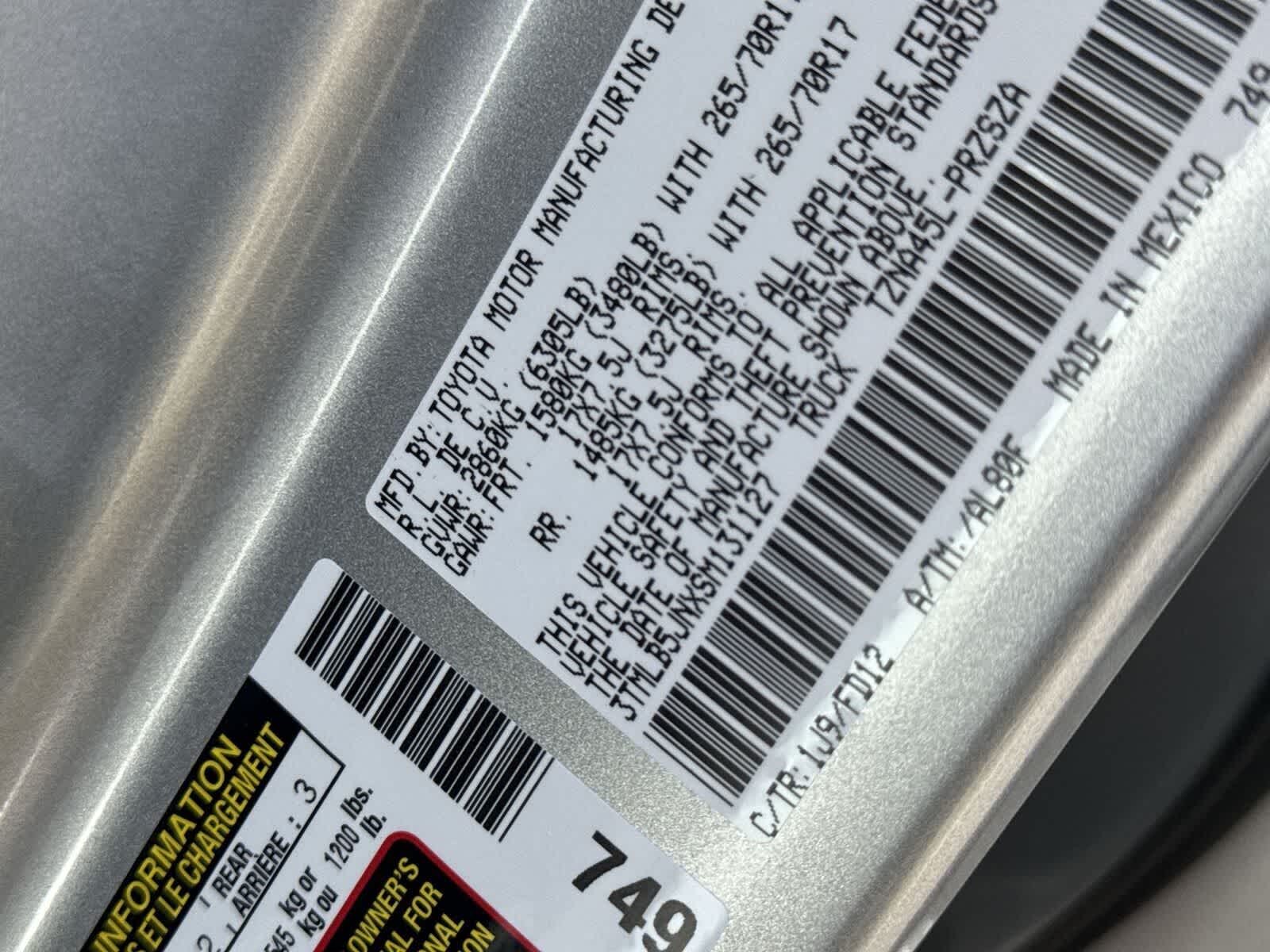 - Vehicle Name: Toyota Tacoma 4WD